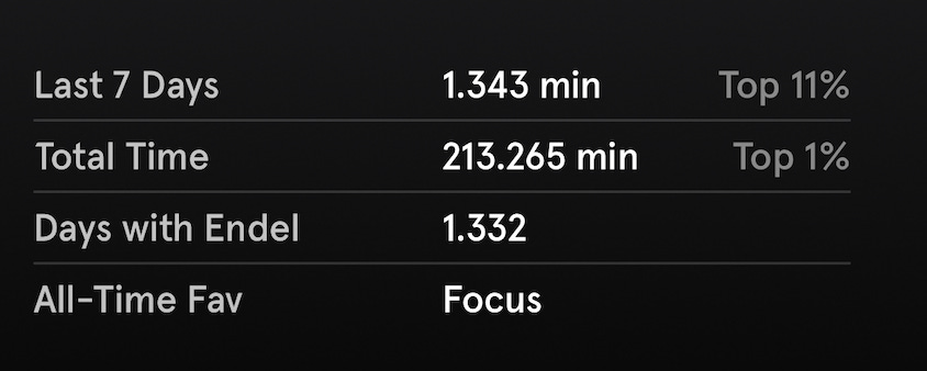 Endel is an ambient noise app for focus, sleep, and relaxation. I use it pretty much nonstop when working, and play the sleep track whenever sleeping in a noisy environment.